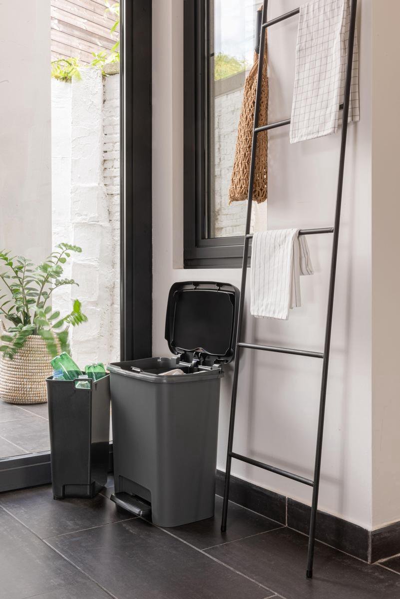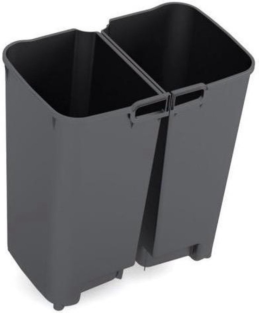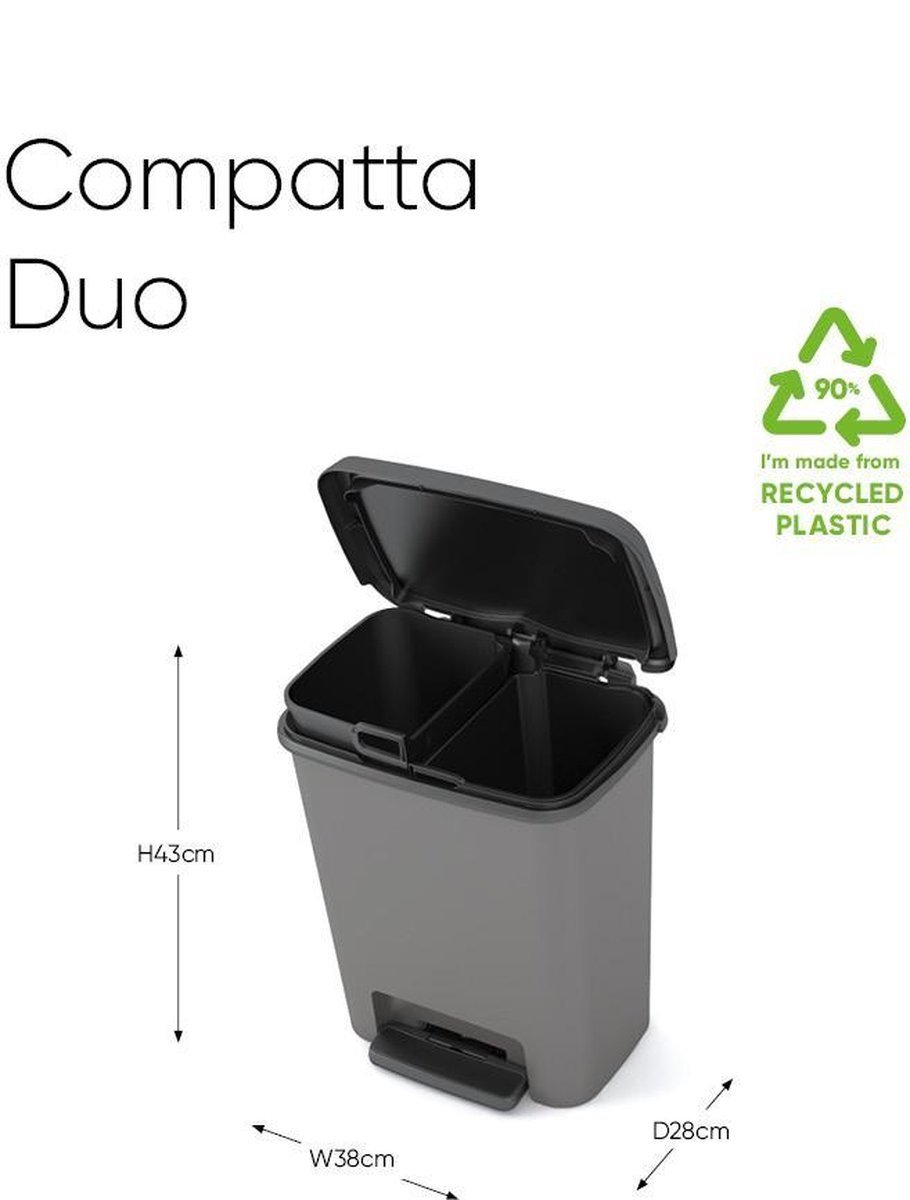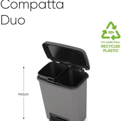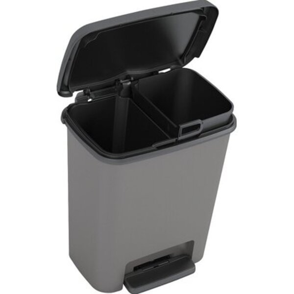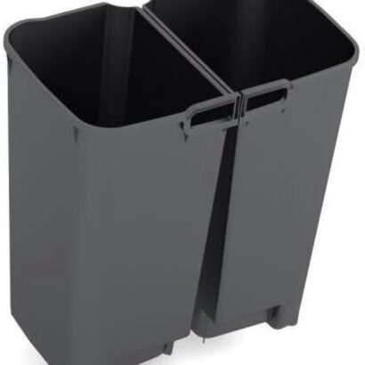 Stworzony z trwałego tworzywa sztucznego. Jest wyposażony w dwie osobne komory, która pozwala na komfortową zmianę worka, segregację oraz wyniesienie śmieci. Dobrze uformowana pokrywa zapobiega wydostawaniu się nieprzyjemnych zapachów. Otwierany nogą po wciśnięciu pedała. Idealnie odnajdzie się w kuchni, sklepie, biurze, czy też punkcie gastronomicznym.